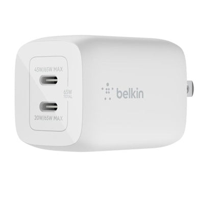 65W Dual USB-C GaN Wall Charger + 2M USB-C to USB-C Cable, White