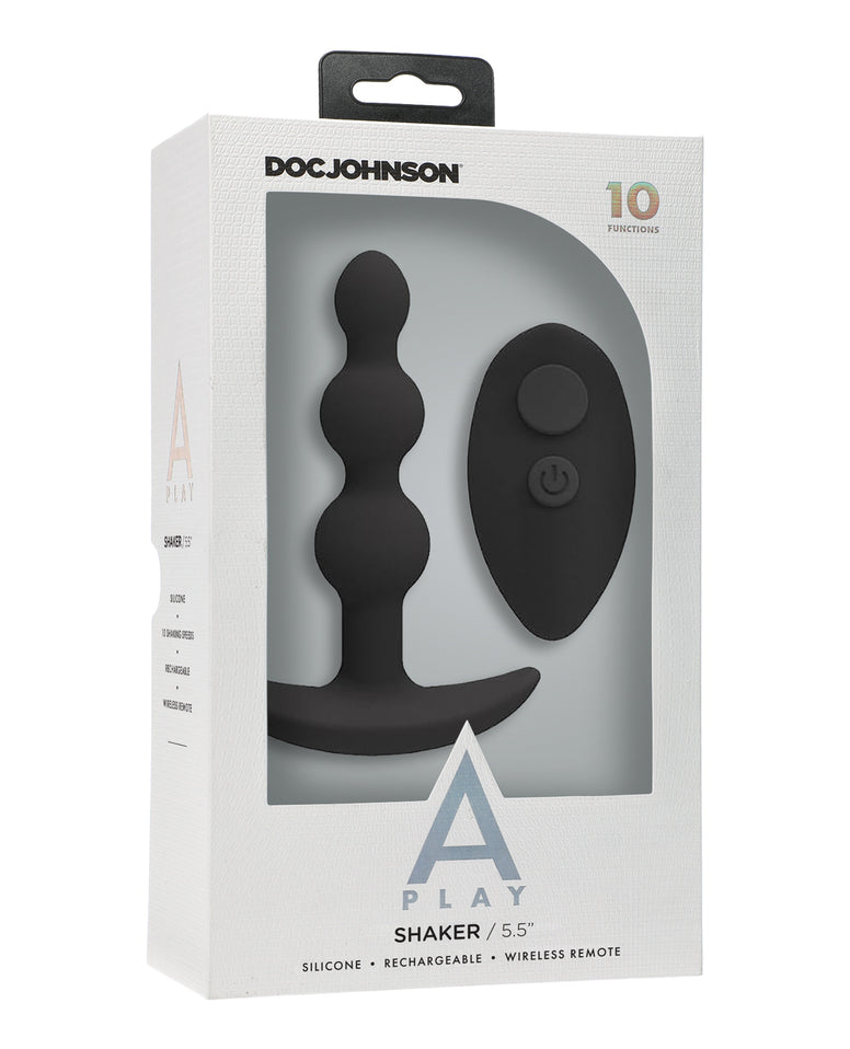 The A-Play BEADED VIBE is a premium quality vibrating beaded anal plug, conveniently controlled directly on the product or via the included wireless remote. A-Play is Doc Johnson's high-end line of performance anal plugs, created with a variety of sizes and special features to promote anal pleasure and exploration for users of every experience level. Each product in the A-Play collection is USB-rechargeable, waterproof, and includes a charging cable and fabric storage bag.