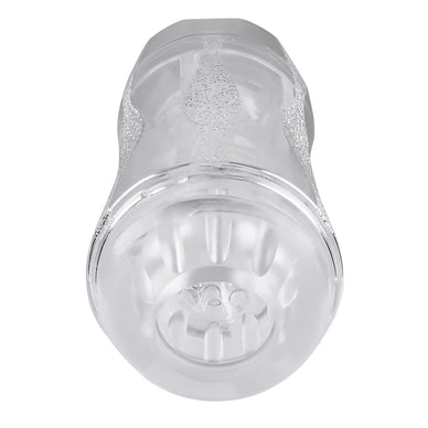Allow the pleasure possibilities to unfold with this unique dual-ended stroker that's beautifully transparent for an erotic see-through experience. Two separate entries with varying sizes (one tight, one loose) lets you choose your adventure inside the circular beaded chamber that's soft and squishy, yielding yet firm. An included vibrating ring lets you experiment with intense stimulation while you play! The hard plastic exterior canister is textured for an easy grip while caps at both ends ensure safe storage and protection. Sleeve pops out for cleaning. <br><br> • Double-ended clear stroker <br> • 2 entries for varied experience <br> • Beaded, circular inner channel <br> • Clear for erotic see-through look <br> • Textured canister for easy hand grip <br> • Dual caps for storage, caps lock into place <br> • Stroker sleeve removes for cleaning <br> • Made from squishy soft TPE rubber <br> • Canister made from durable ABS plastic <br> • Phthalate and latex free <br> • Waterproof and submersible <br> • Includes vibrating C-Ring <br><br> Tight entry: 0.5" (1.27cm) diameter <br> Loose entry: 1.15" (2.92cm) diameter <br> Length: 6.75" (17.15cm) <br> Depth: 2.72" (6.91cm) <br> Width: 2.72" (6.91cm)