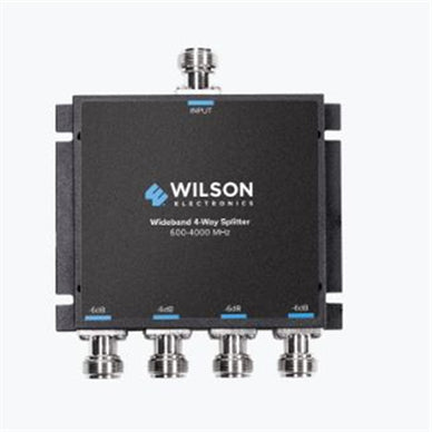 This 4way splitter 859117 is used with WilsonPro cellular repeaters to split a signal into 4 equal parts, allowing 4 antennas to be run from a single cable and receive similar strength. It is required in order to add CBand antennas 311245, 311243, 311242 and repeaters to an existing system. Designed to be used with WilsonPro CBand products, this splitter is compatible with frequencies from 600 to 4,000 MHz. This IP65 indoor and outdoor rated splitter supports CBand, TMobile band 71, and is Pro 710i compatible. As a highperformance splitter, it features low insertion loss and low VSWR voltage standing wave ratio. It is equipped with NFemale connectors. Replaces previous version of 4way splitter 859981. Note: for users requiring current or future CBand support, CBand antennas, splitters, and taps must be used.